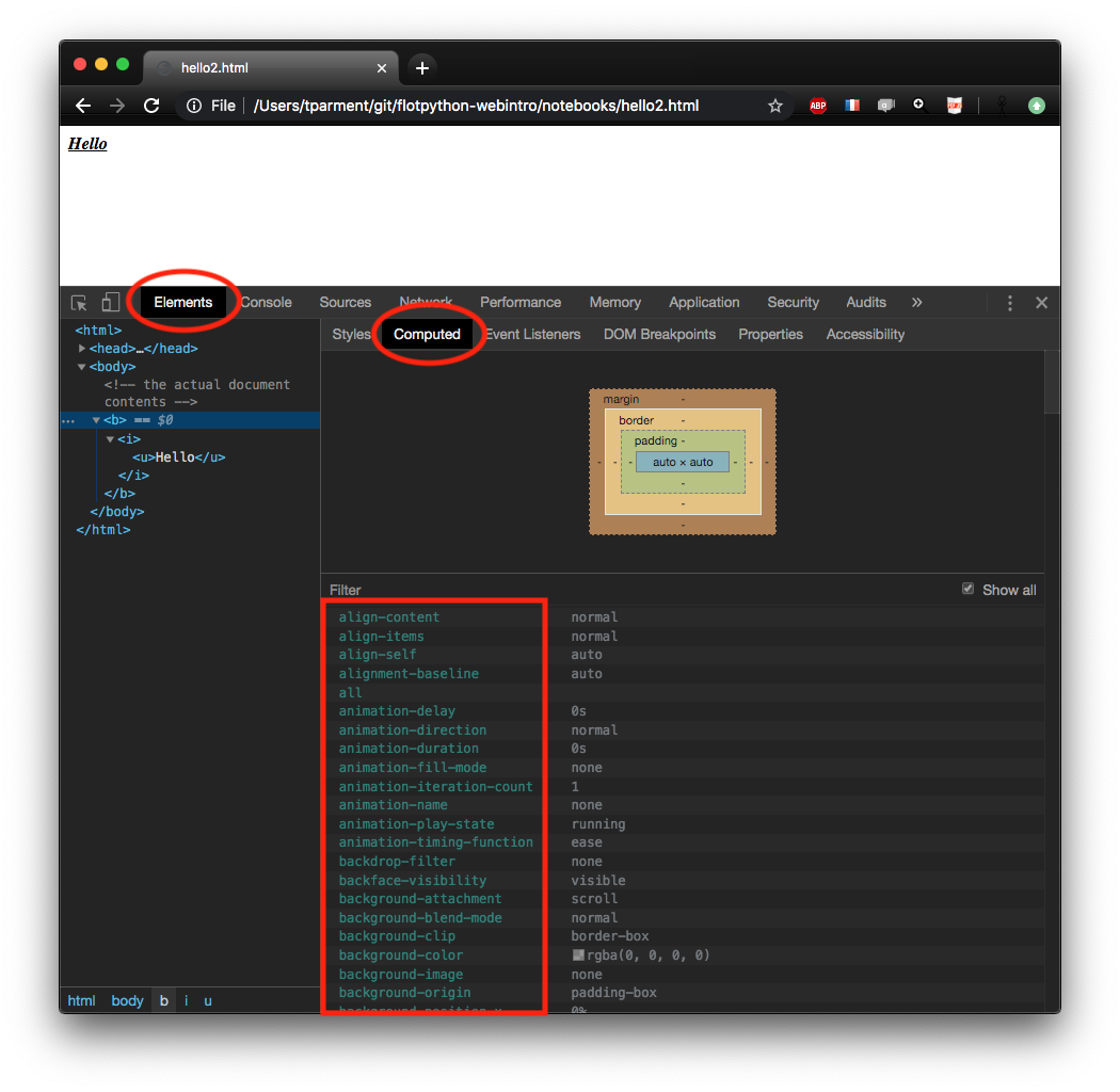 Elementstab of the devel tools, in theComputedpanenote that not all properties are relevant on all elements