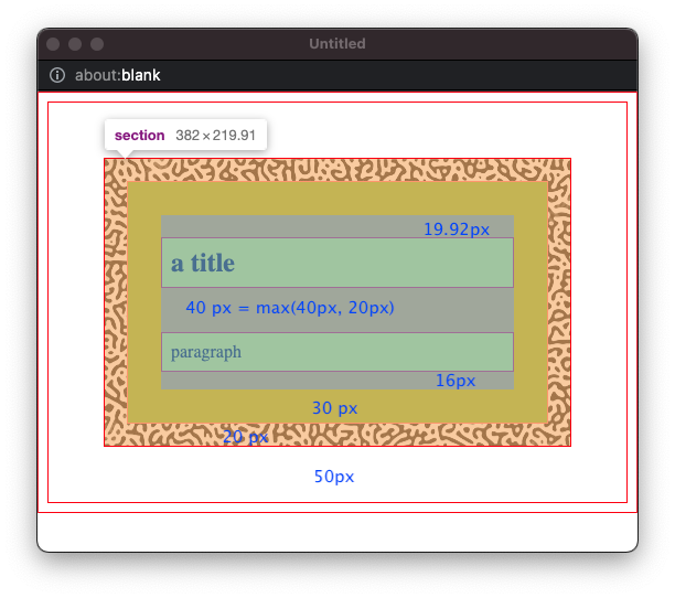 each visible element can be styled according to the box model, as shown in the browser devel tools
